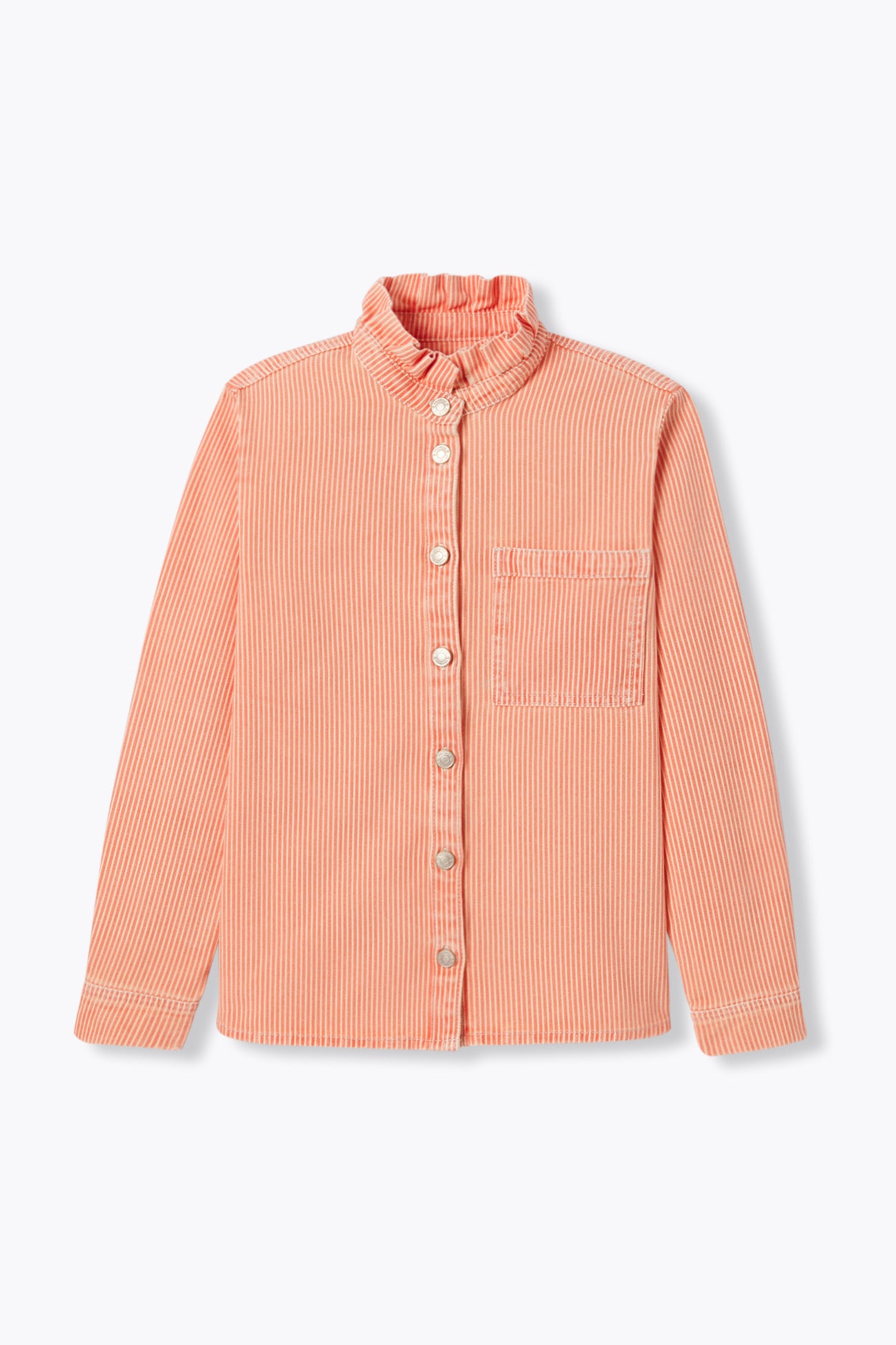 An iconic contemporary shirt / overshirt. Perfect for all seasons. In a modern leopard pattern. In soft thick supple canvas. In pure cotton. Straight shape. Raised neckline with Victorian frill. Stud buttons. Single chest pocket. Long sleeves with button cuffs. Straight lower hemline. Sized small.