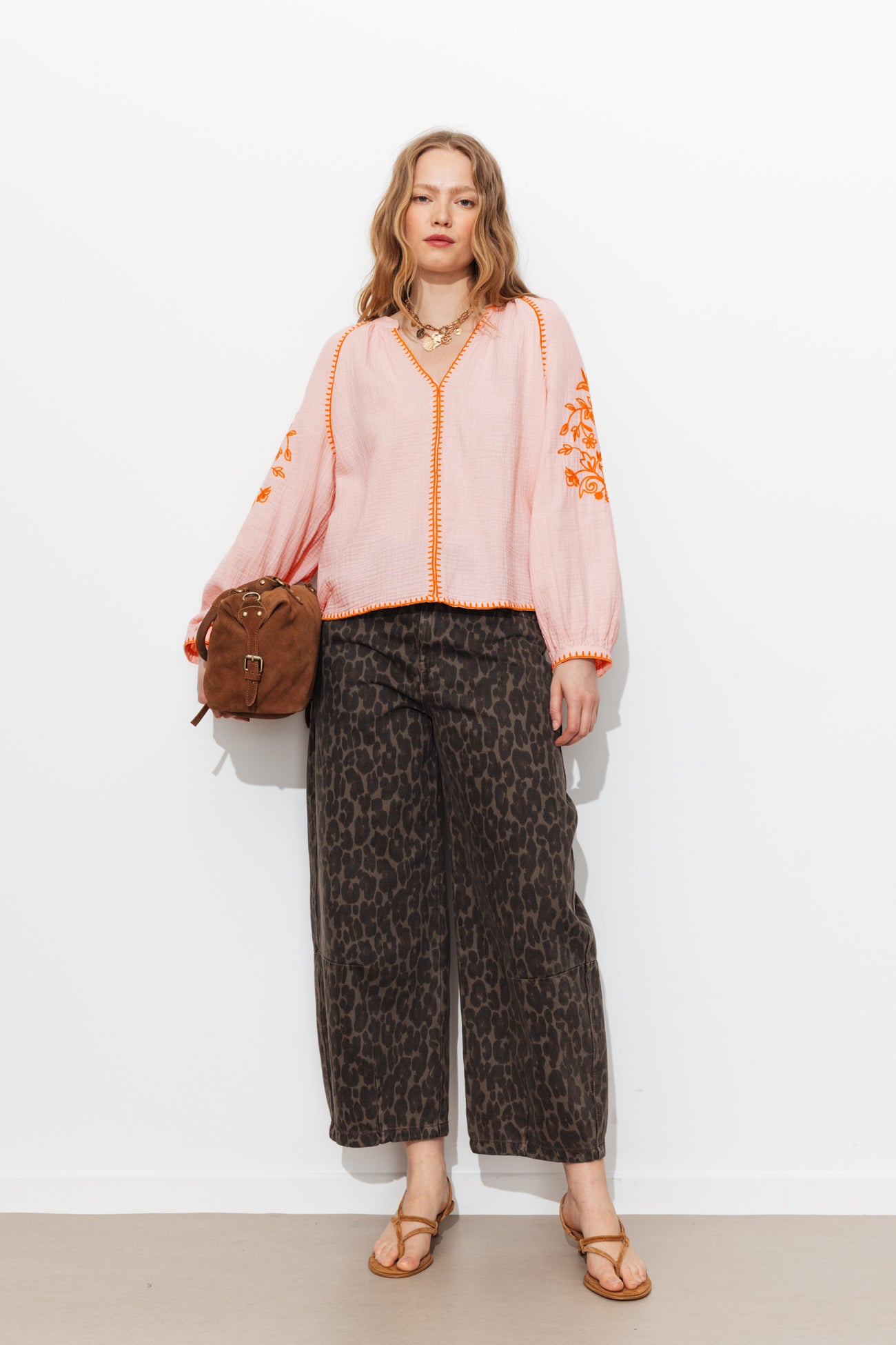 Embroidered cotton blouse - Peach