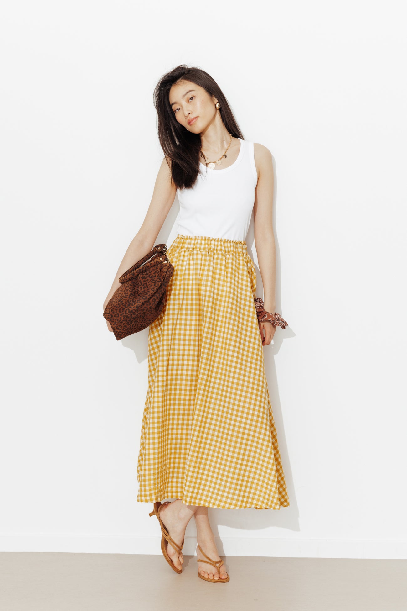 Gingham checked skirt - Ochre checks