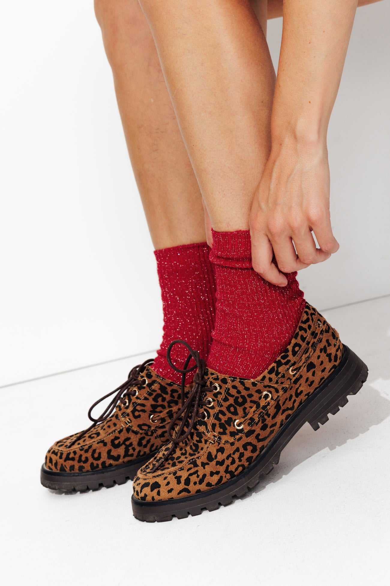 A festive air this autumn-winter! Glitzy socks. In a stretchy knit with ribbing. Featuring metallic fibres. Heel and toe sections. Elasticated ankle edge. This year, pair with moccasins, deck shoes, boots or lace-ups. A lovely gift inspiration!