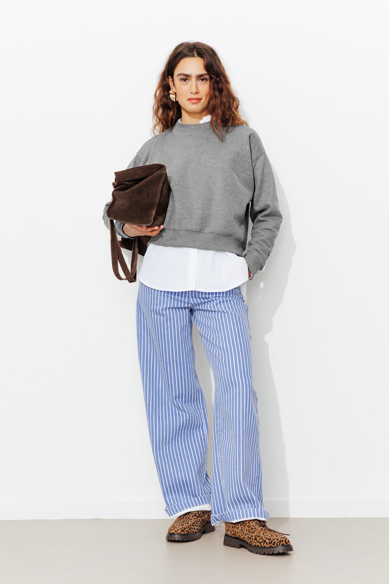 Soft cosy sweatshirt. With glitz. Brushed inner side. Oversized cut. Ribbed round neckline. Front patterned motif, plain back. Long drop sleeves. Straight lower hemline. Ribbed edges. Includes recycled fibres. For city, weekends or sports wear.