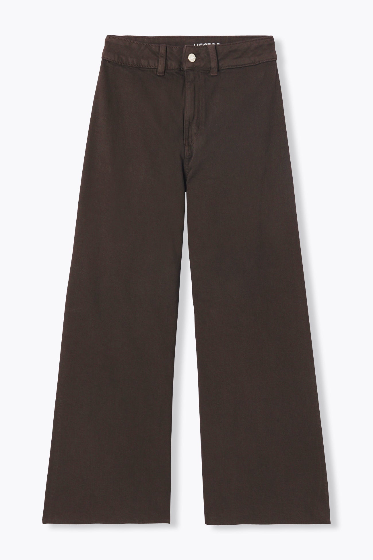 HECTOR trousers in a wideleg cut. Available in a range of colours. In slightly stretchy serge cotton. Just right to build your wardrobe collection! Ankle length. Flattering ultra-high waist. Stud button and zipper. Beltloops. No front pockets. Two back pockets. Frayed ankles (easy to shorten if desired). Includes organic cotton. Natural fibers, grown without pesticides, GM nor chemical fertilizers.
