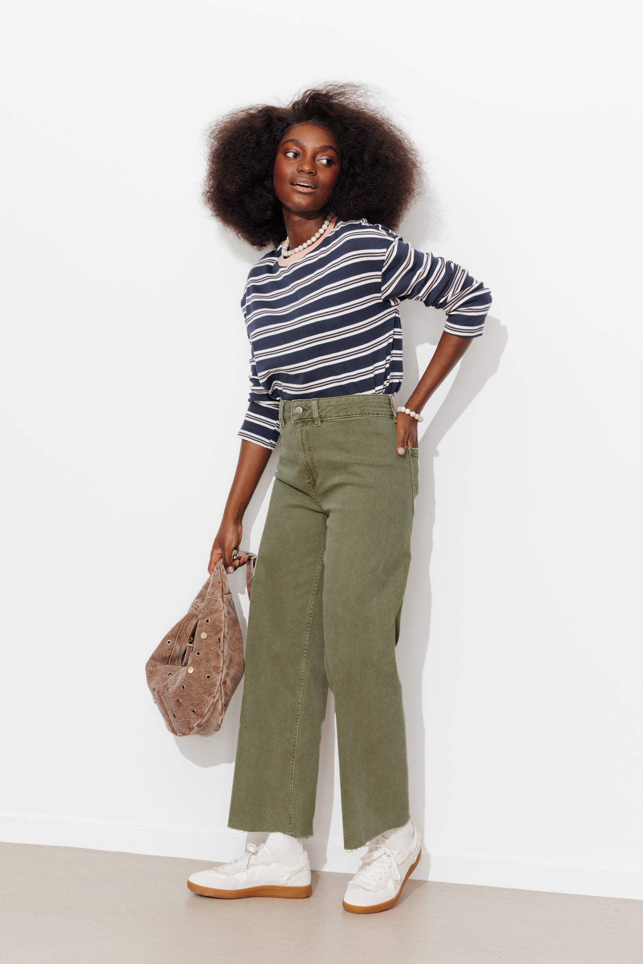 HECTOR trousers in a wideleg cut. Available in a range of colours. In slightly stretchy serge cotton. Just right to build your wardrobe collection! Ankle length. Flattering ultra-high waist. Stud button and zipper. Beltloops. No front pockets. Two back pockets. Frayed ankles (easy to shorten if desired). Includes organic cotton. Natural fibers, grown without pesticides, GM nor chemical fertilizers.