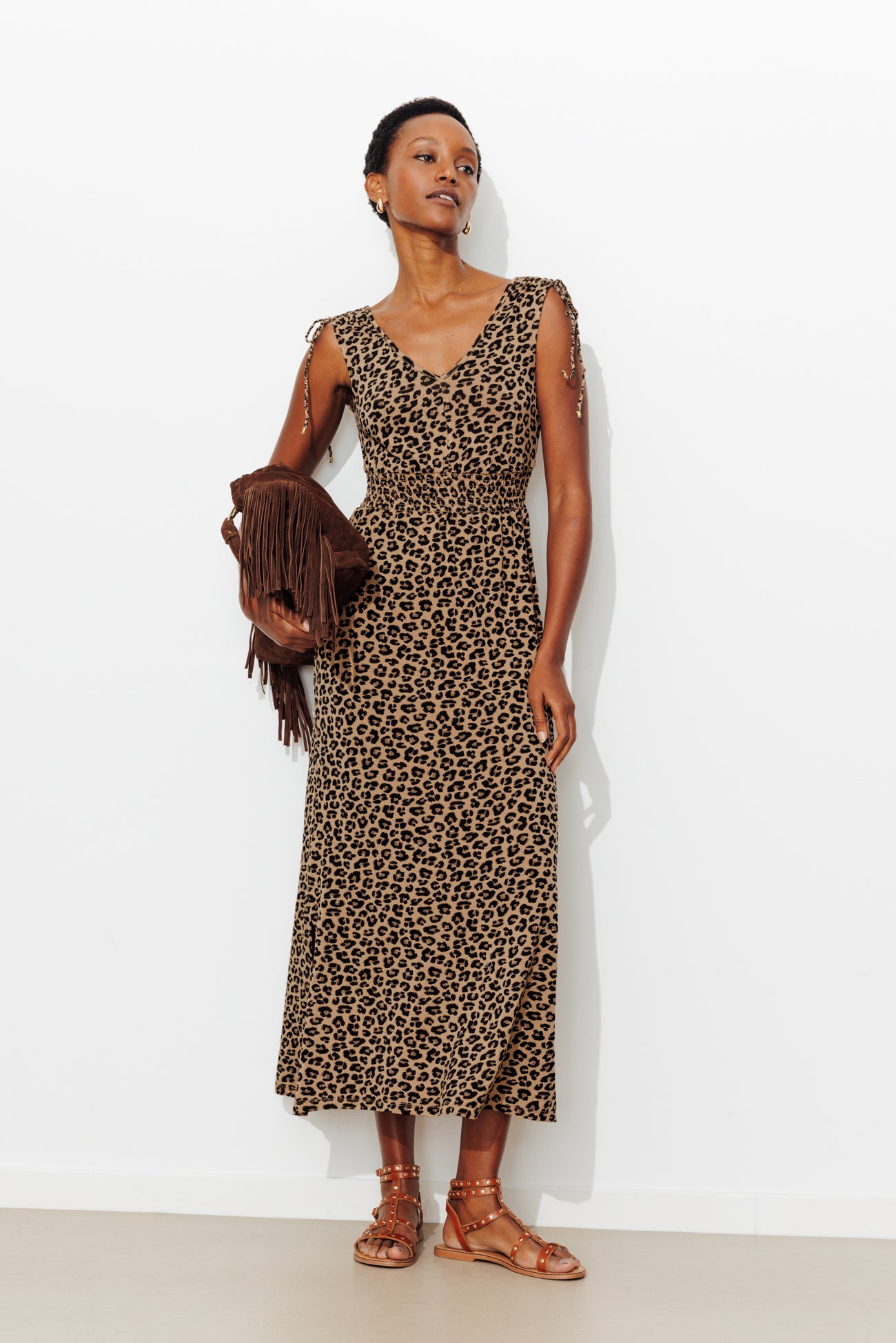 Jersey dress - Chestnut brown print
