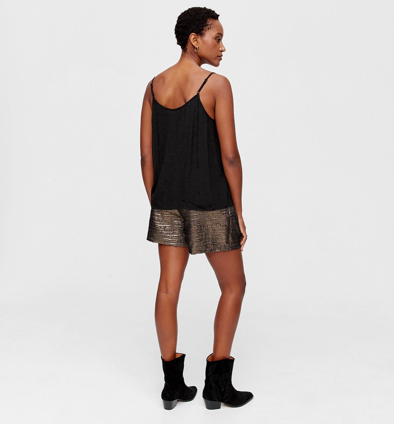 WINTER SUN - beautiful top to wear if you're heading off to sunnier climes this winter! Strappy design. With dainty lace detail. In a soft drapy hang. V-neckline front and back. Bias trim. Adjustable straps. Perfect for day or evening wear, paired with a suit jacket or pretty cardigan.