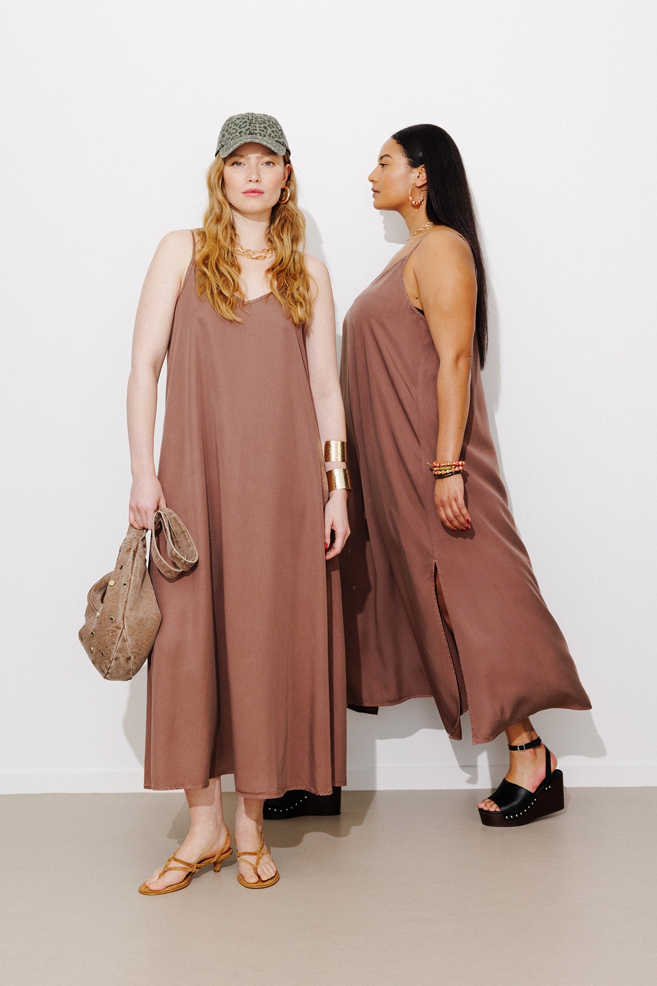 Long plain lyocell dress - Chestnut brown