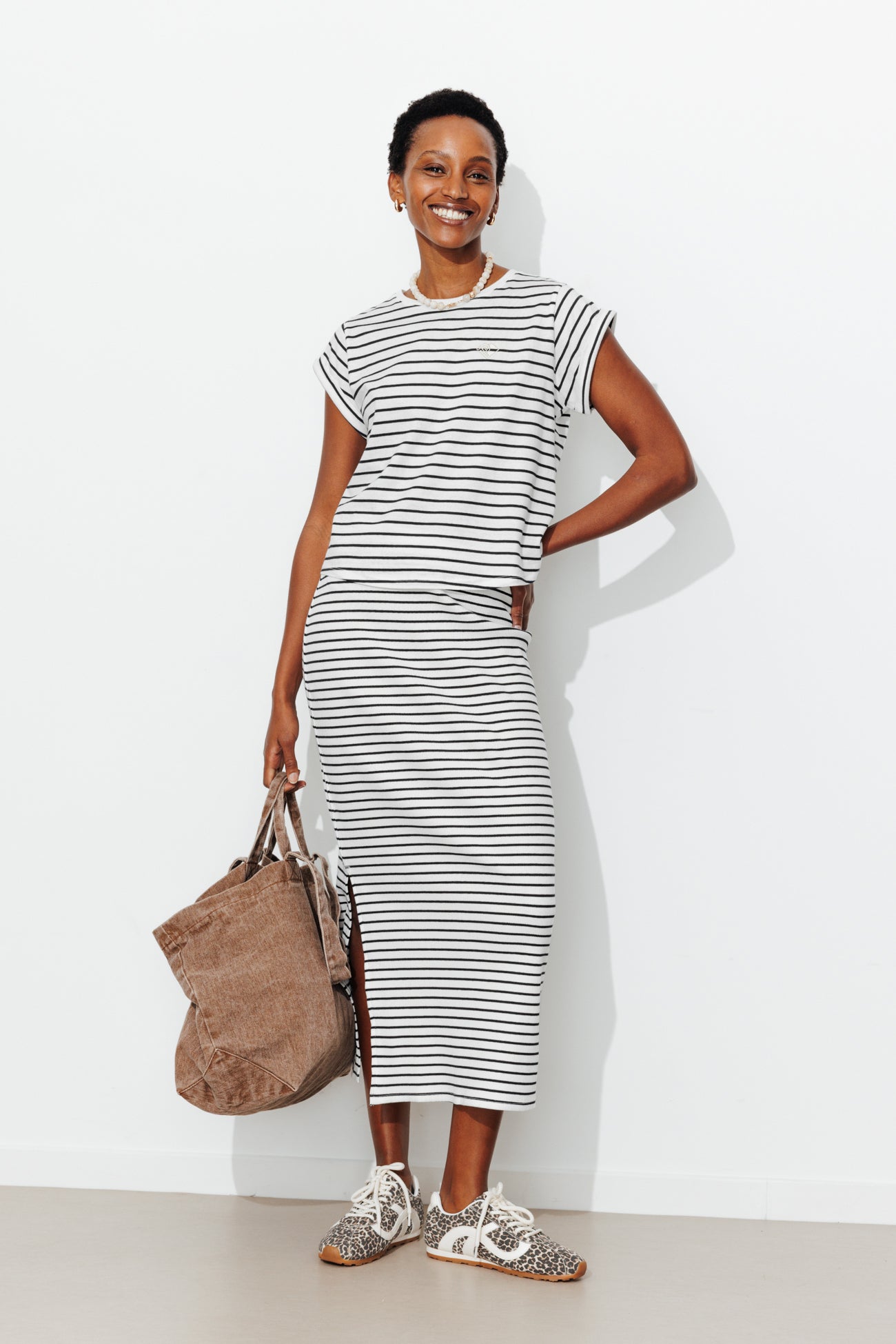 Nautical midi skirt - Ecru stripes