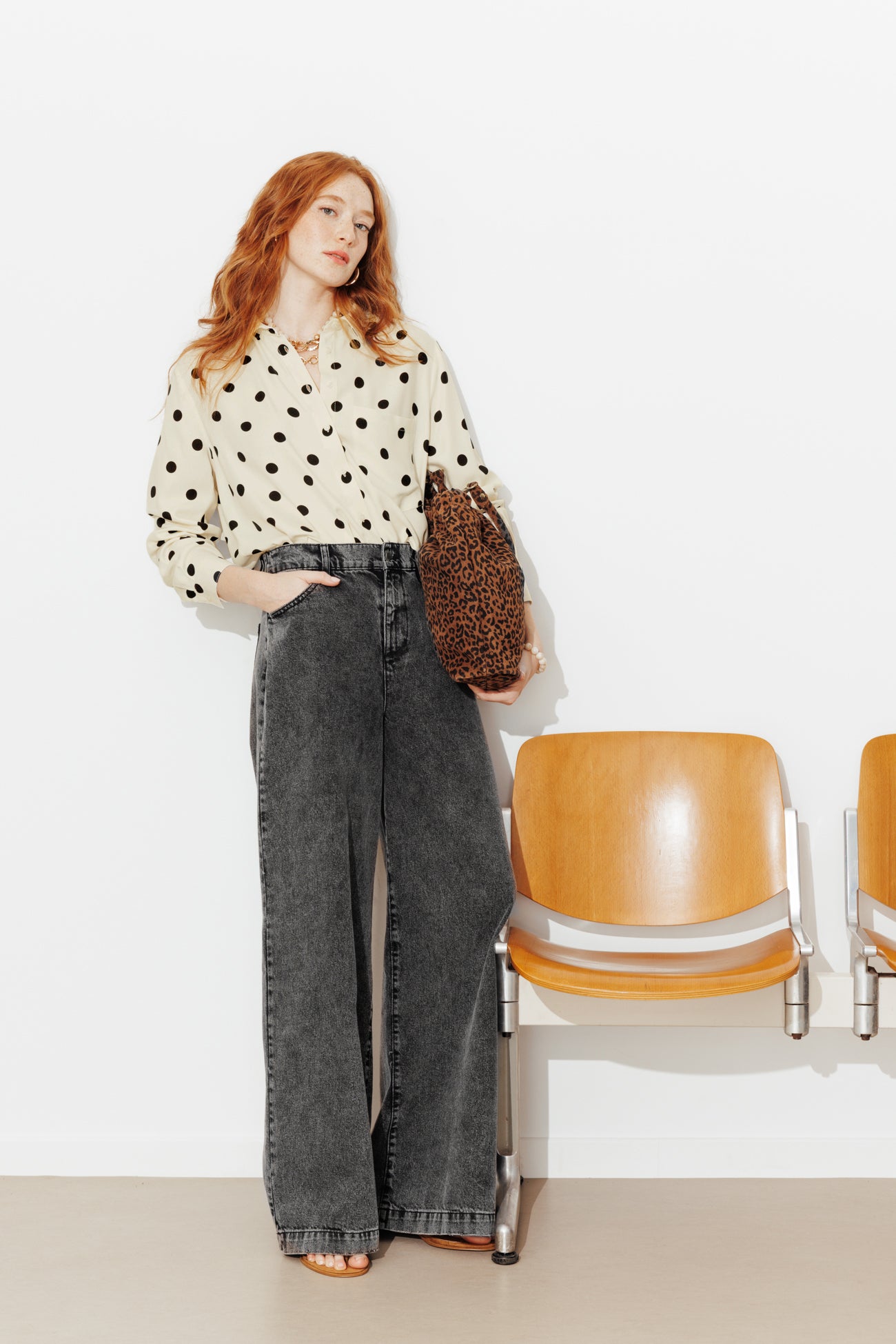 Standout shirt in a bold pattern. So versatile for office wear, restaurants, parties or a formal event. Goes great with smart trousers, a pencil skirt or jeans. In drapy crêpe viscose, a pleasure to wear. Straight shape. Shirt collar. Button front. Single chest pocket. Long sleeves with button cuffs. Curved lower edge. Topstitched.