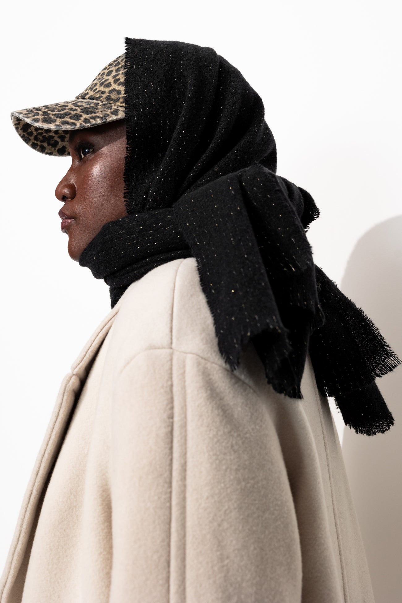 Big cosy scarf with a touch of glitz featuring lurex threads for an eyecatching look. In a soft feel. Goes great with a jacket, trenchcoat, parka, padded or smart coat. Frayed edges. A lovely gift idea. Includes recycled fibres.