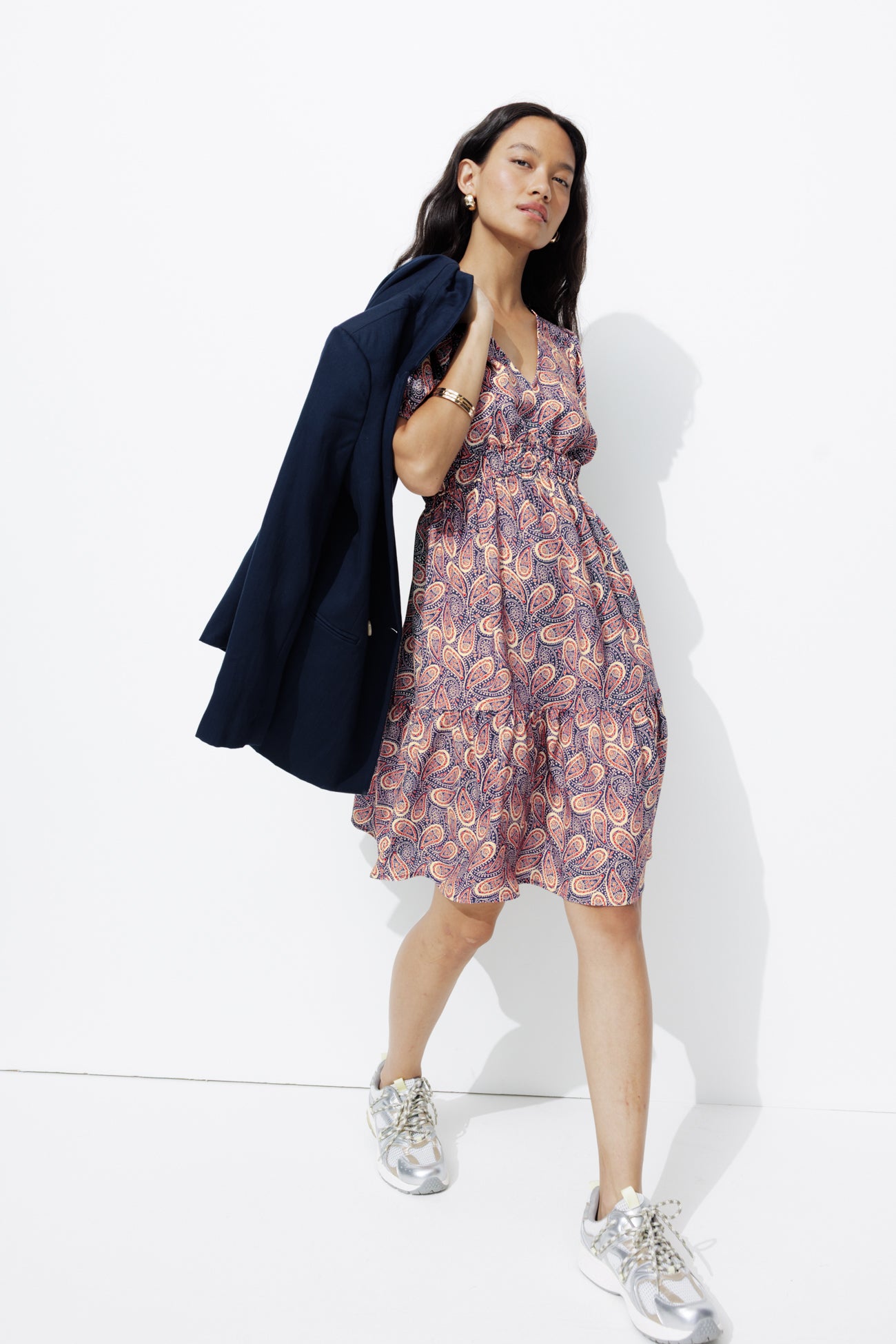 Short eco-design dress - Navy blue print