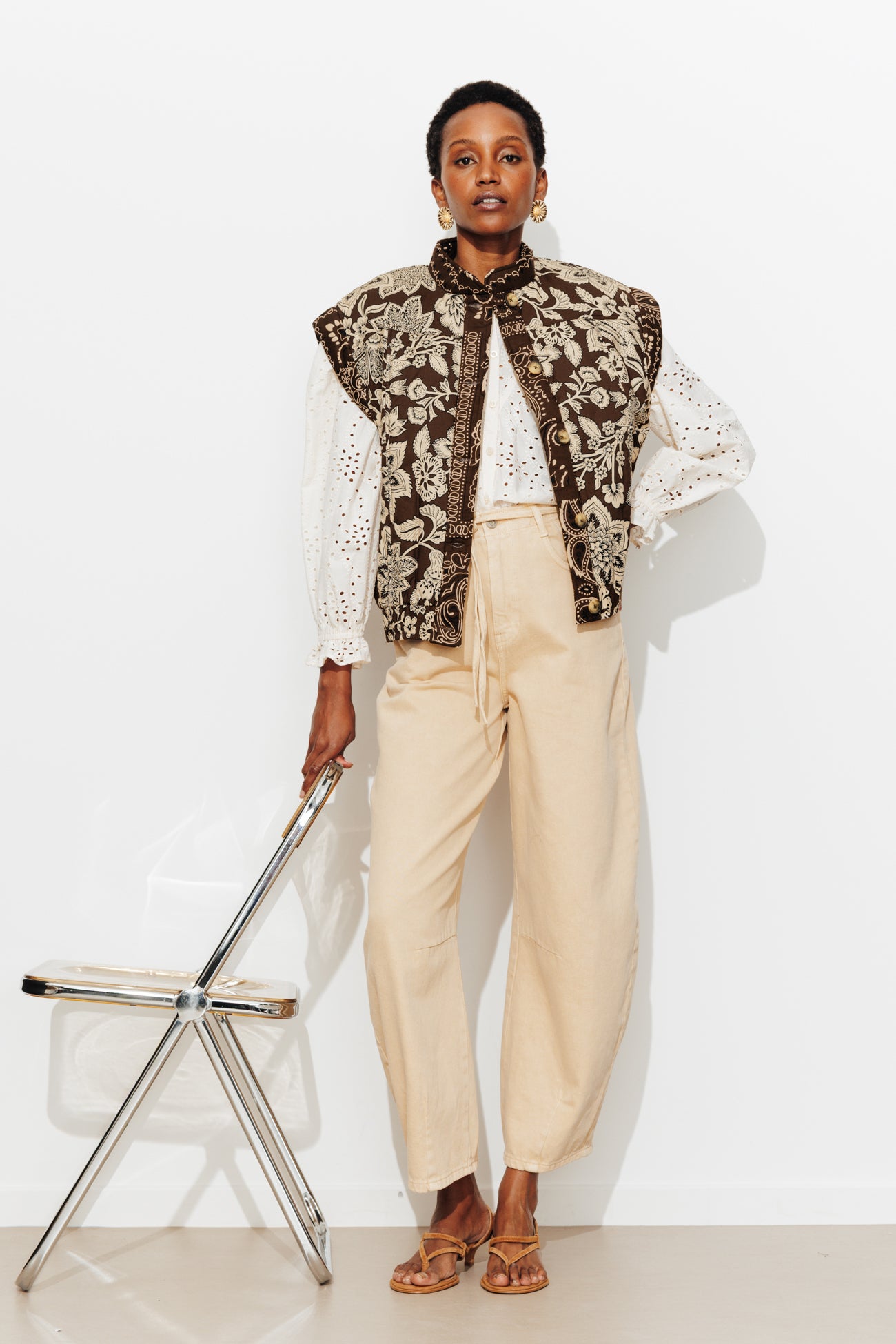 Sleeveless padded jacket - Chestnut brown print