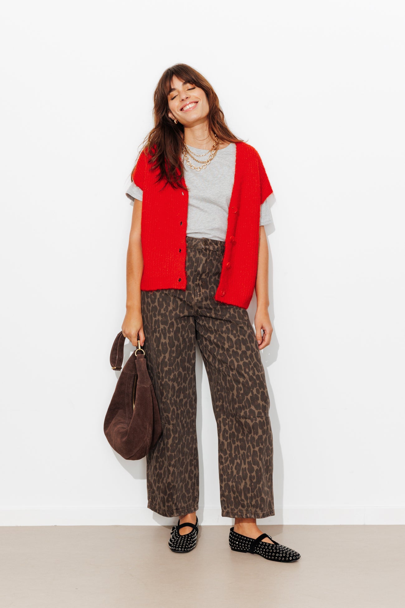 Treat yourself to a cosy cocooning cardigan for autumn-winter. Stylish feelgood dressing! Sleeveless with shaped armholes. Squashy fluffy knit with wool in the blend. Oversized shape. V-neckline. Button front. Straight lower edge. Includes recycled fibres.