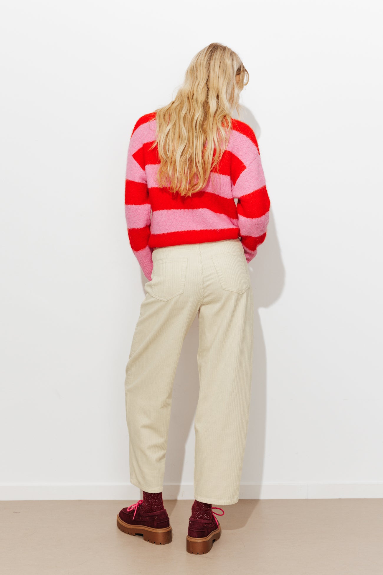 Let's be honest, we are often happy with our generous curves, but rarely happy with our midriff. So then we do everything to disguise it, don't we? Finding the right womenswear trousers that best hide this curve is a tricky mission… but here are a few body shape tips to help you: you can always go for high-waisted trousers, that cover the midriff, such as high-waisted jeans or peg-shaped trousers. Avoid womenswear trousers with a really bold elasticated waist, and instead opt for trousers with a tie-waistband that adapts itself perfectly to your body shape. Select thicker fabrics, to skim over any little imperfections. But our top advice to you, is to choose what pleases you, because nothing is as beautiful as a women who is wearing what she wants and wears it with pridet !